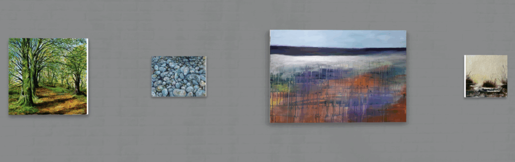 Within the Art Exhibition work is displayed on gallery walls. Click on any artwork to obtain its details including a link to buy it..
