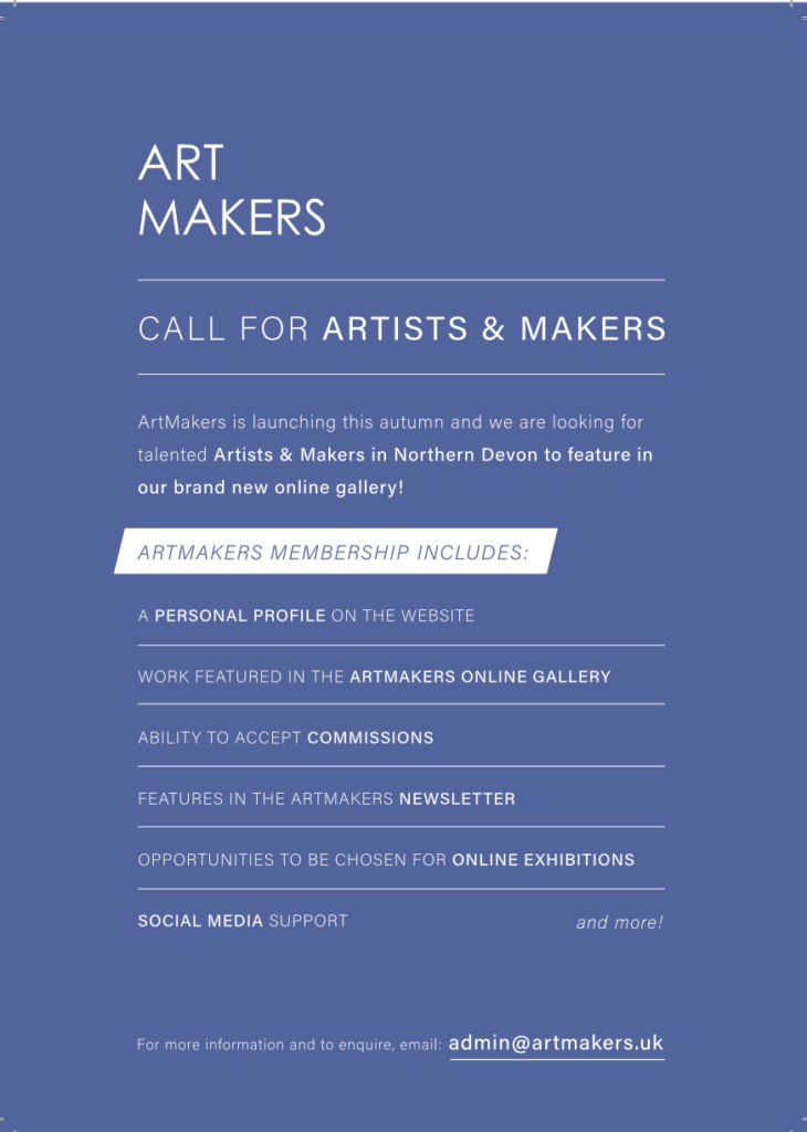 Artmakers has launched a call to artist and makers in northern Devon to join the new website via Instagram and Facebook. The call reached over 1200 people within the first week, with over 200 engagements. Phil and Hlary, the Artmakers founders, have been fielding calls for information everyday and now expect to have a substantial initial registration of artists and makers in preparation for their official launch to buyers, and the fisrt AR exhibition, in November.