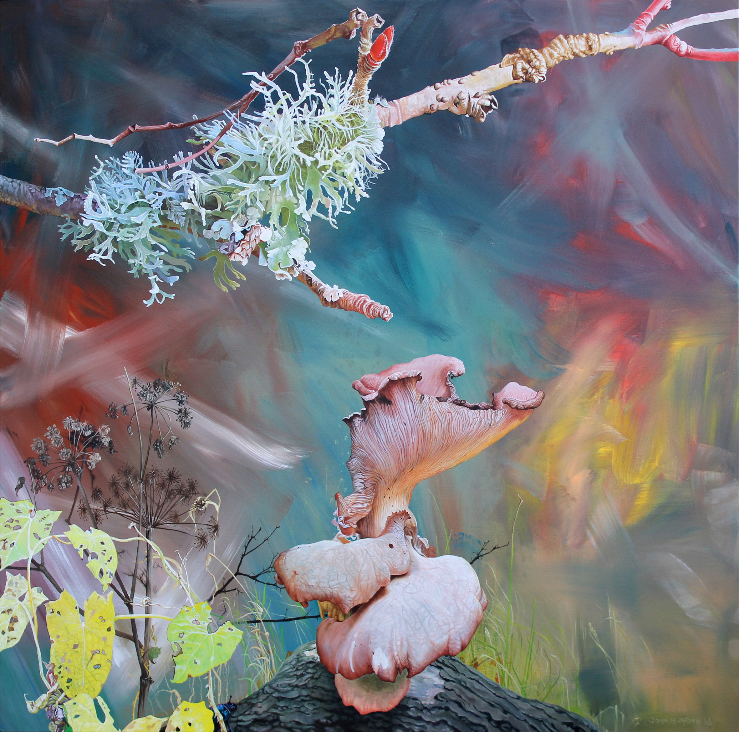 Fungi from a forest in the Netherlands, lichen from our woods on the farm, abstract background