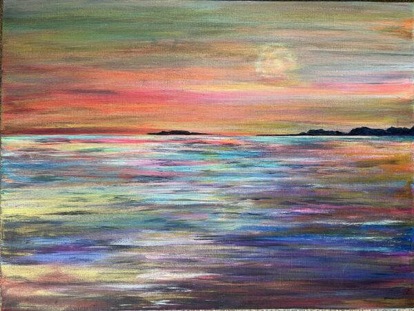 With bold, vibrant colours, always favoured by the artist, a glorious original acrylic painting