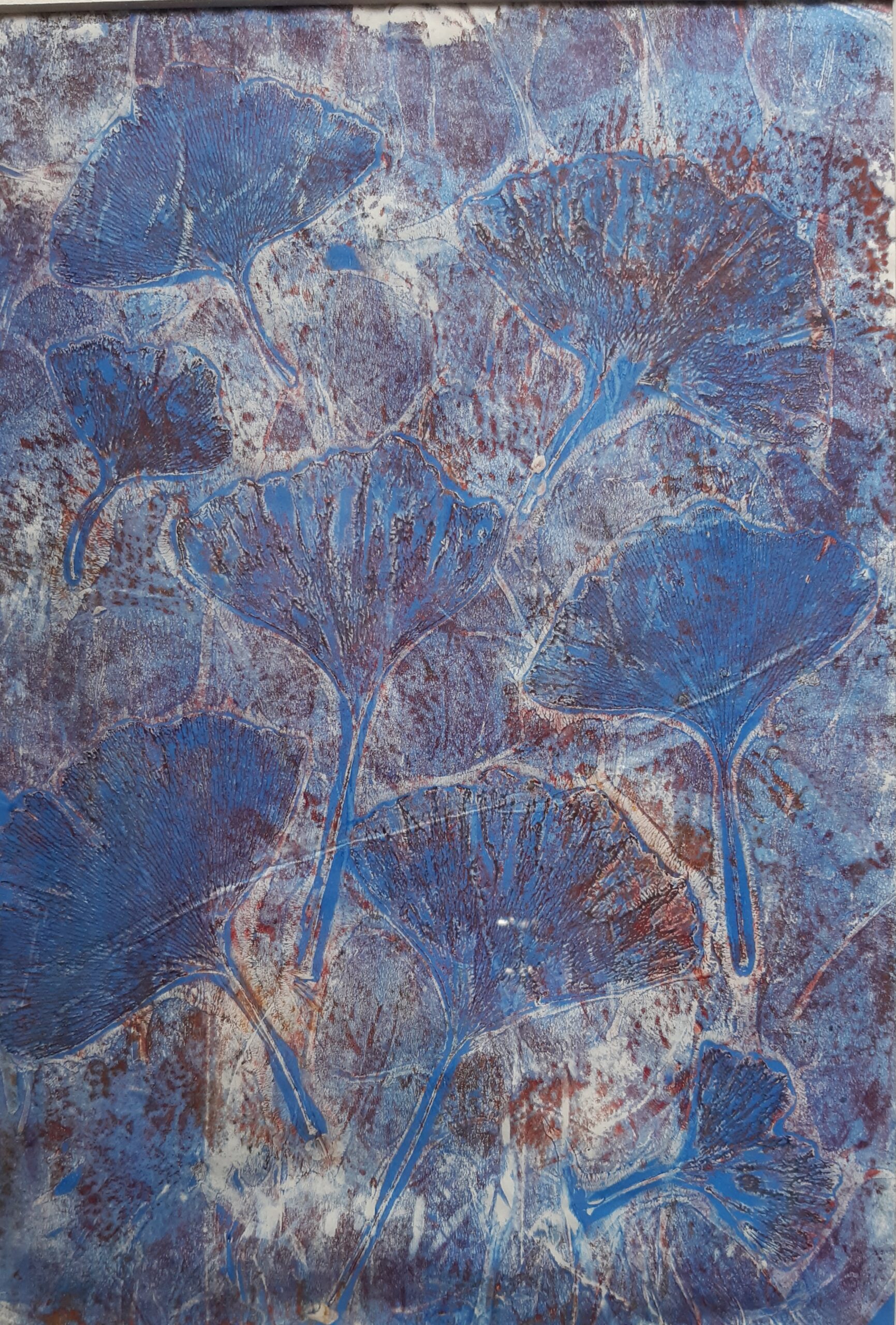 A mono type that captures the textures and shapes of leaves in vibrant colours.