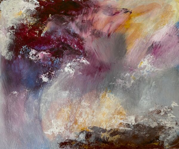 This vibrant modern abstract painting is acrylic on paper, mounted on board measuring 30cm x 25cm and presented in a black floating frame and is ready to hang as soon as you receive it. Immerse yourself in the enchanting interplay of colours and movement. This abstract masterpiece captures the ethereal dance of shadows, where ochre, magenta, grey, and white gracefully intertwine. Each brushstroke is a step in this mesmerizing choreography, inviting you to explore the depths of imagination and emotion.
