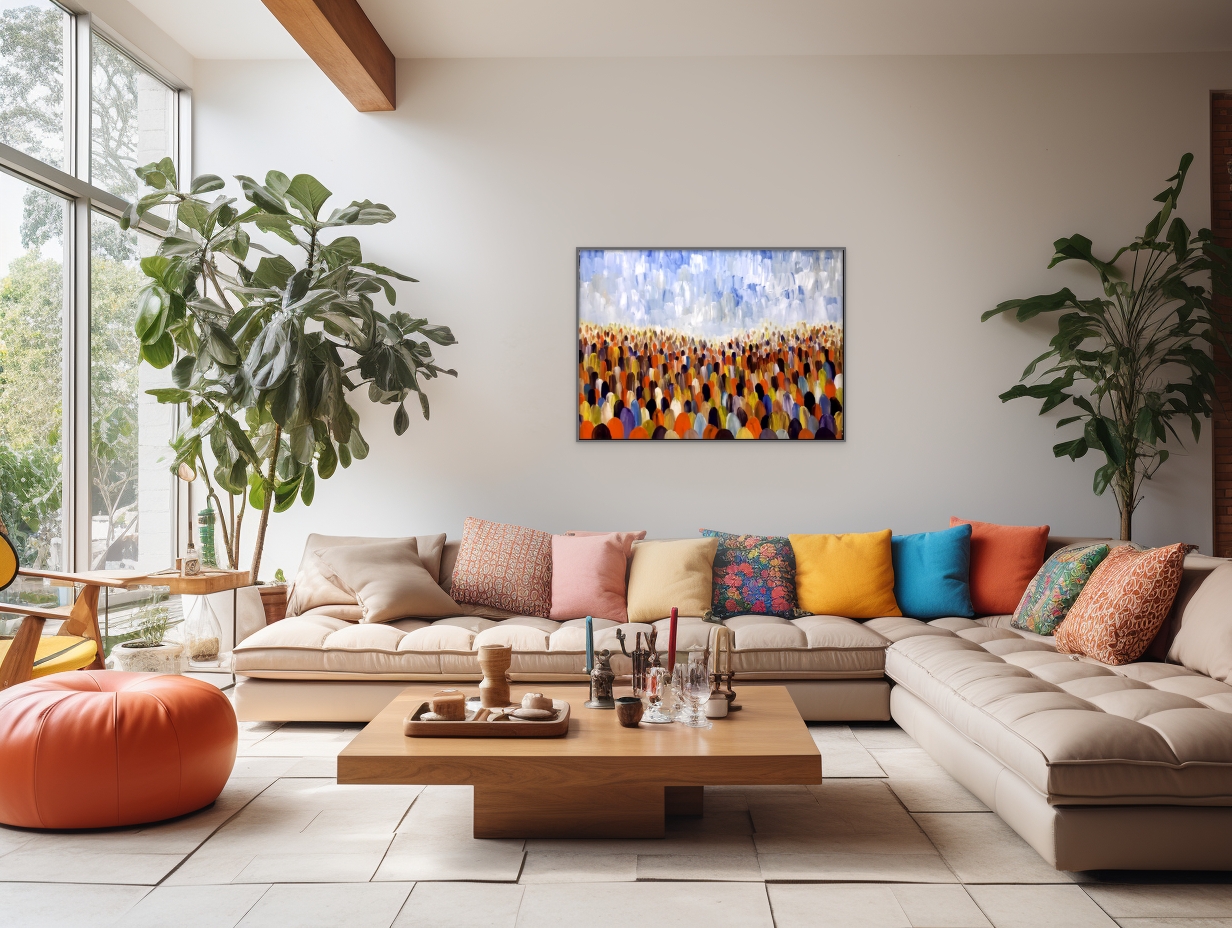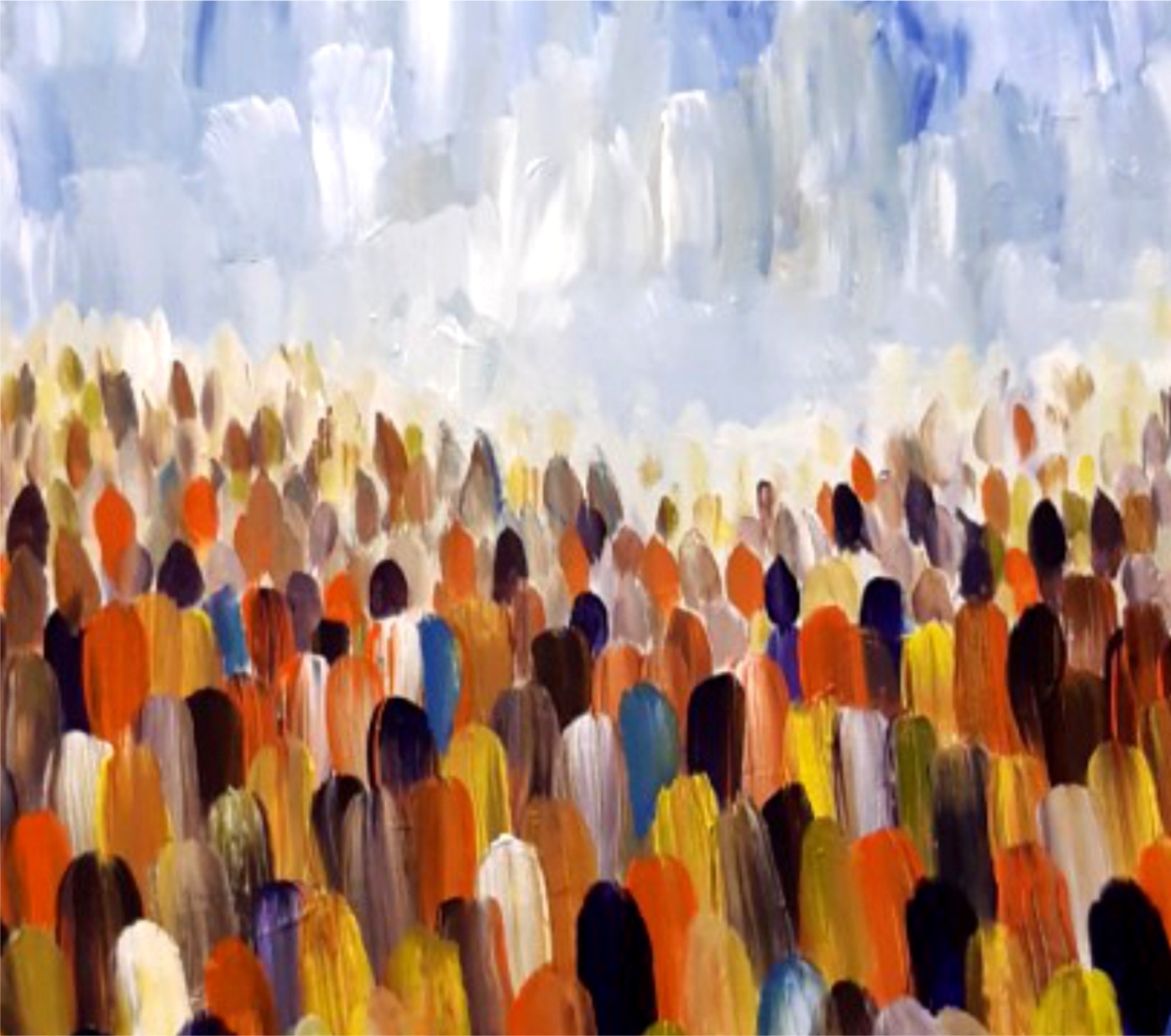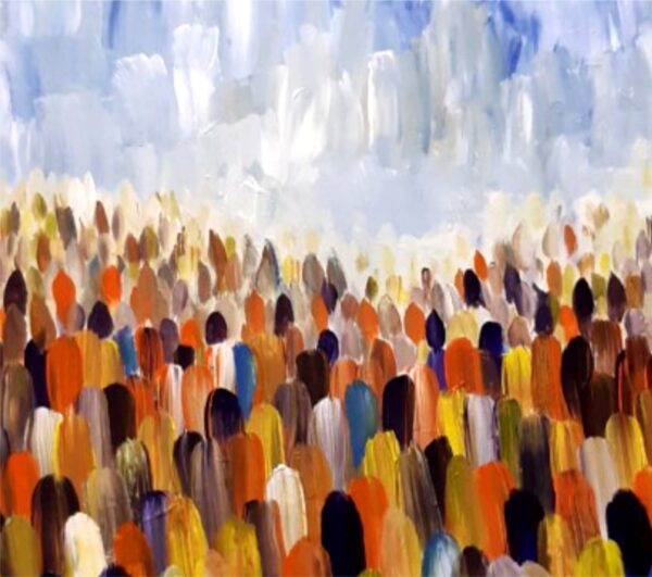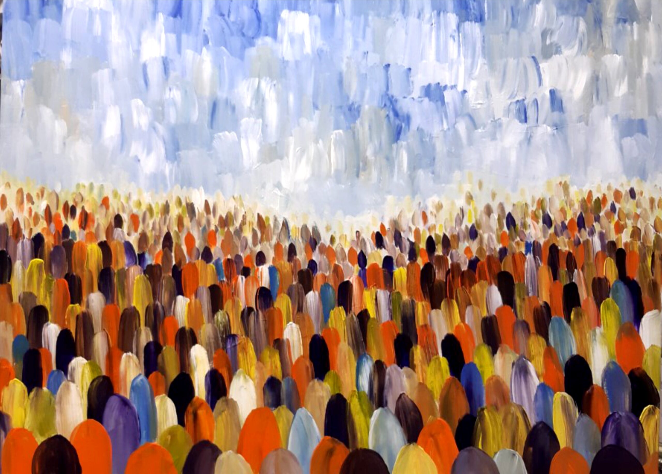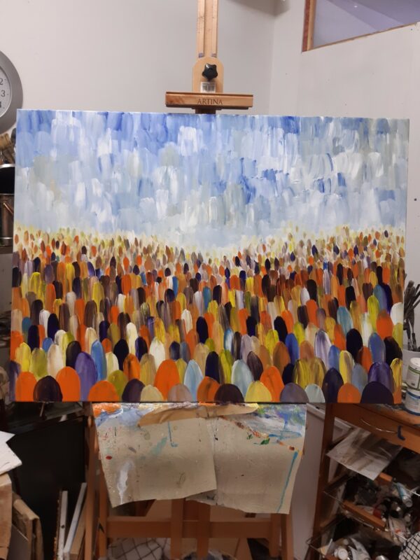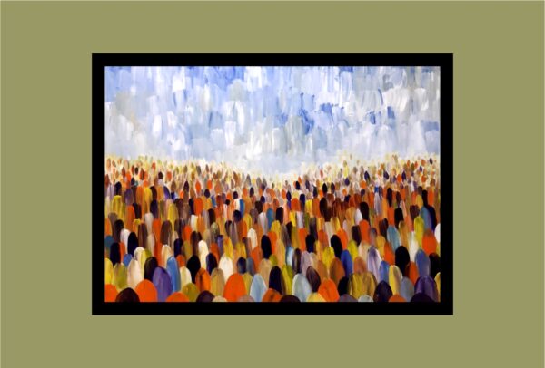 One of the EXODUS series. A surge of human figures on the move, migrant, refugees, or a football crowd. whatever you imagination sees.