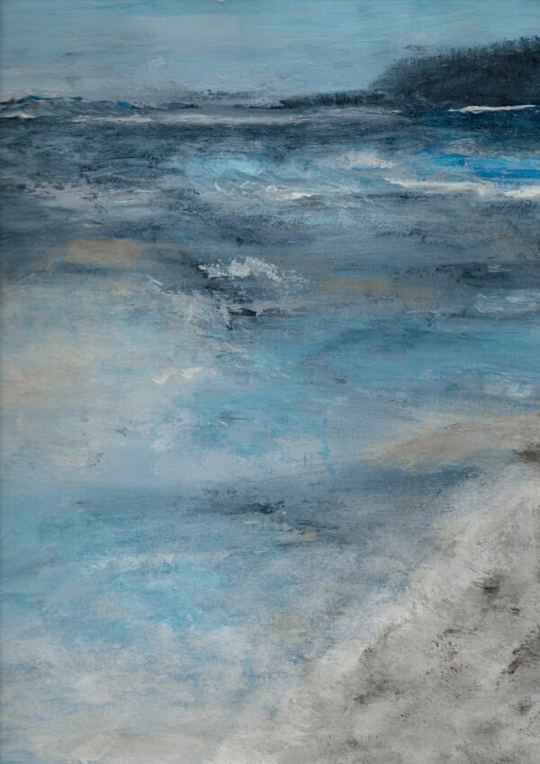 Indulge in the captivating allure of this acrylic abstract painting, mounted on a sturdy 9mm board and elegantly framed in a floating frame. The composition is a harmonious blend of light blues, teal, burnt umber, white, grey, and the subtlest hint of yellow ochre, inviting you into a realm of artistic expression. The artist's skilled brushwork brings forth a dance of colours and textures across the artwork. Shades of light blues and teal create a sense of serenity and tranquillity, reminiscent of calm waters and a clear sky on a peaceful day. These soothing hues transport you to a place of relaxation, inviting you to unwind and find solace in the artwork's gentle embrace. As your gaze explores the painting, touches of burnt umber add depth and warmth, creating a subtle contrast to the cooler tones. These earthy accents provide a grounding element, evoking a sense of stability amidst the ethereal beauty.
