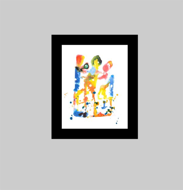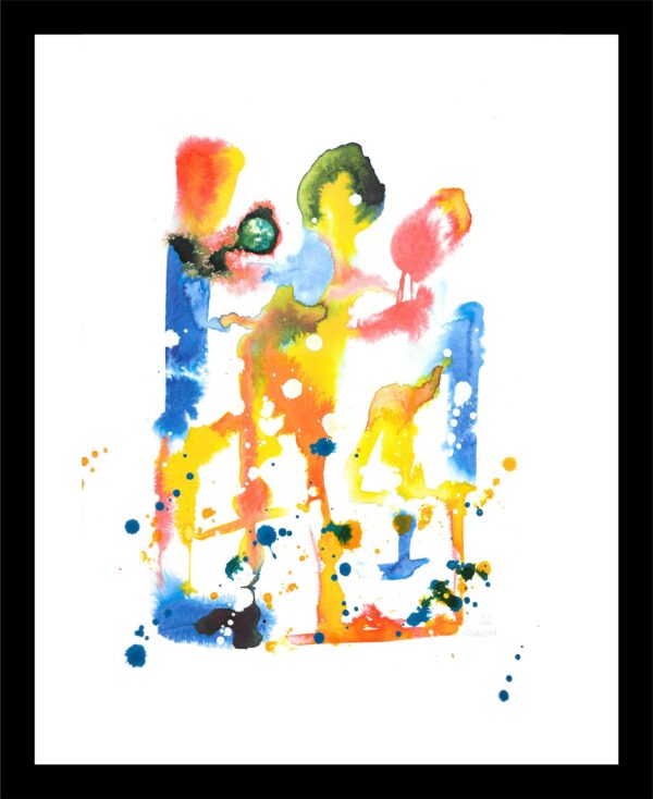 This original, colourful ink painting conjures up images of teenagers having a kick about with a football, but maybe you see something different! Suitable to be mounted 14" x 11". Shipped unframed with certification. Prints also available.