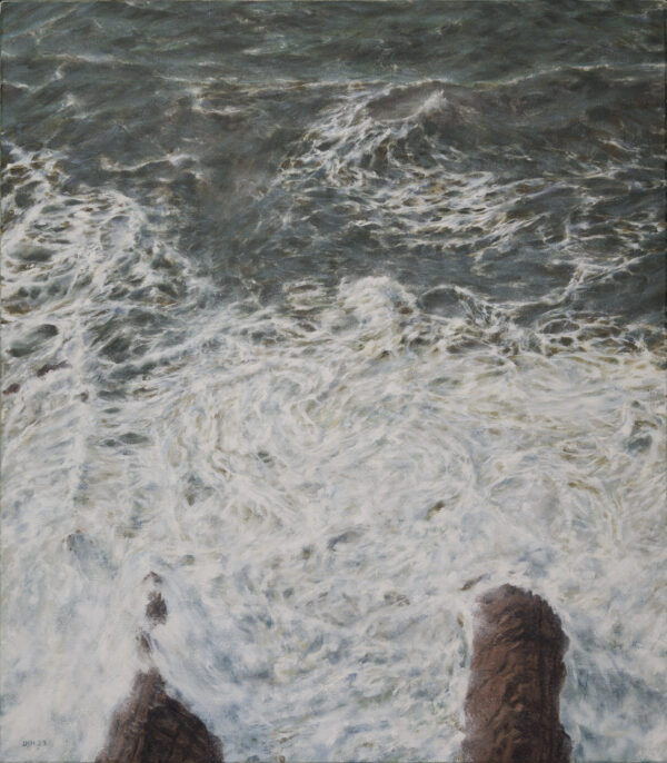 A study of the edge of the sea, made in North Devon. An unframed box canvas with white edges, made with professional quality lightfast pigments.