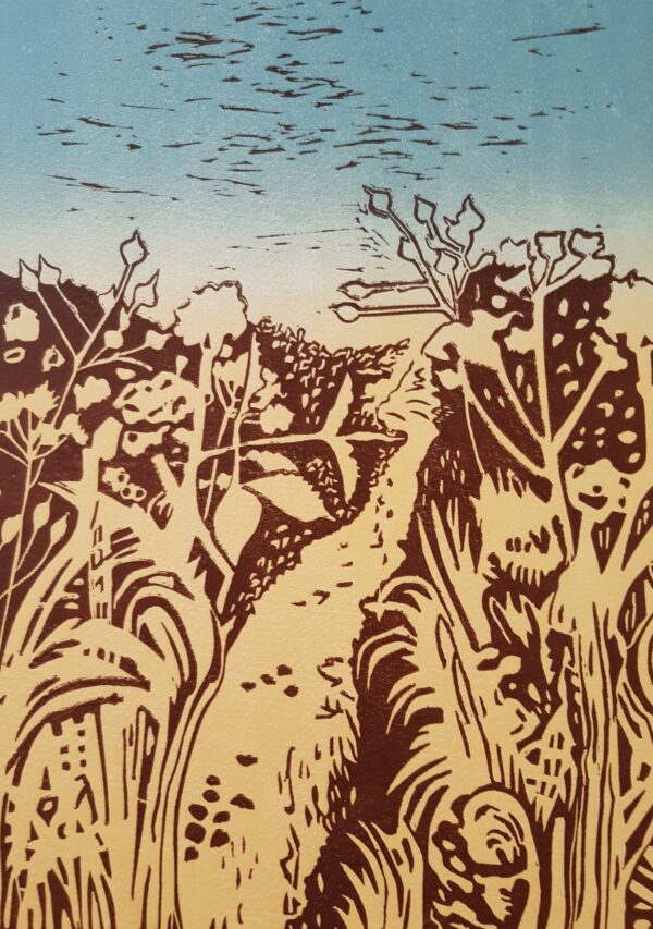 Lino-cut print inspired by the wonderful variety of wild plants growing along our Devon lanes