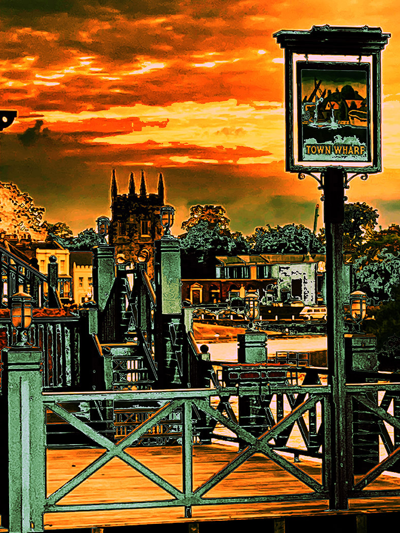 Held within quiet geometry - Isleworth Wharf. Thameslight remembered in soft alignment. A format not to frame, but to echo. 2025 View of the Thames looking towards Old Isleworth. Photography and Digital. Multilayered print. Part of the series 'Isleworth'