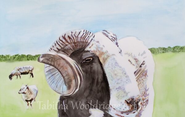 This painting shows a sheep, painted in watercolour on Bockingford paper. The sheep has been painted in so many different colours to perfectly capture the character of the sheep and also the texture of his wool.
