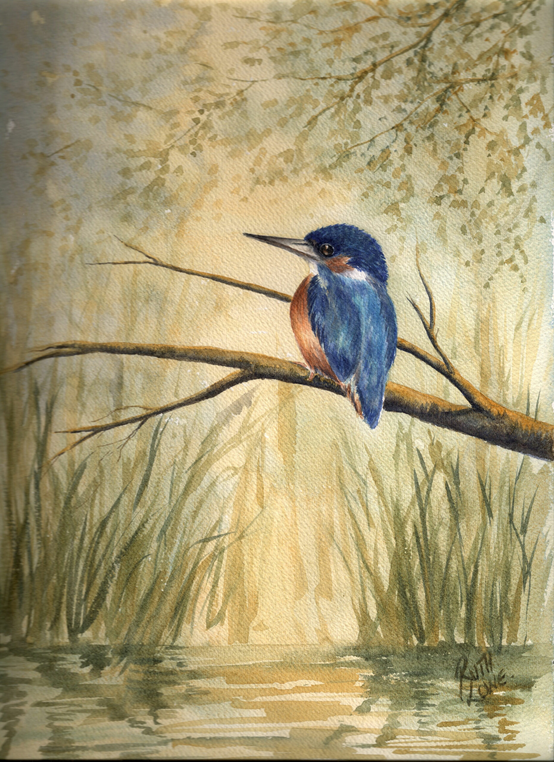 From one of my own original watercolours this portrays the master of the riverbank surveying his surroundings on a soft and misty day This is a Limited Edition Giclee Print (Edition of 50) from my original watercolour painting. All my limited edition prints are printed onto St Cuthberts Mill 100% Cotton paper, (225g/m2) which is acid free and archival. The inks that are used are The inks used are Epson UltraChrome K3, guaranteed to be lightfast. The print is A4 in size and is supplied mounted in a cream mount, ready for you to frame. Mount Size is 18″ x 14″ All my Limited Edition Prints are will be individually numbered and recorded.