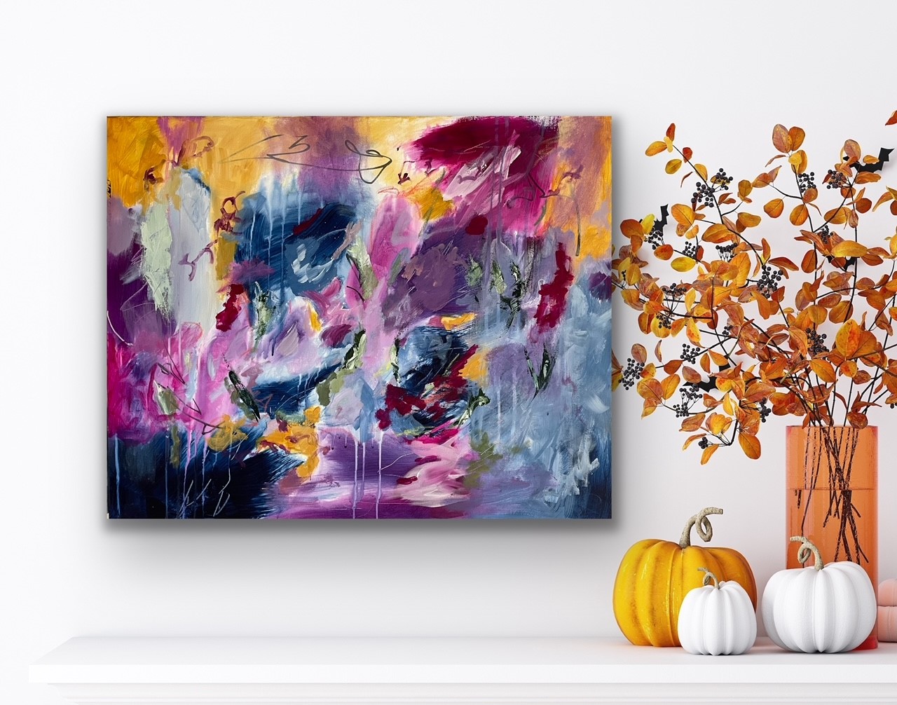 "Late Summer" is an abstract masterpiece that captures the essence of a season in transition. This vibrant and evocative painting is a symphony of colours and emotions, skilfully composed to convey the fleeting beauty of late summer. Interwoven within the reds are delicate touches of gold, glistening like drops of sunlight. These golden accents reflect the last rays of the setting sun, casting a luminous glow on the canvas and infusing it with a sense of warmth and nostalgia.