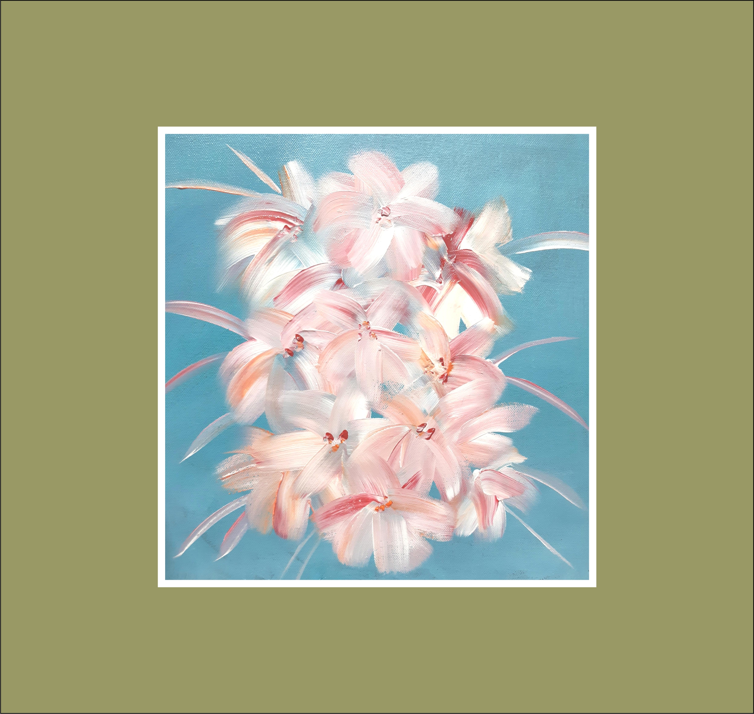 A freestyle painting in acrylics of lilies. For sale with certification.