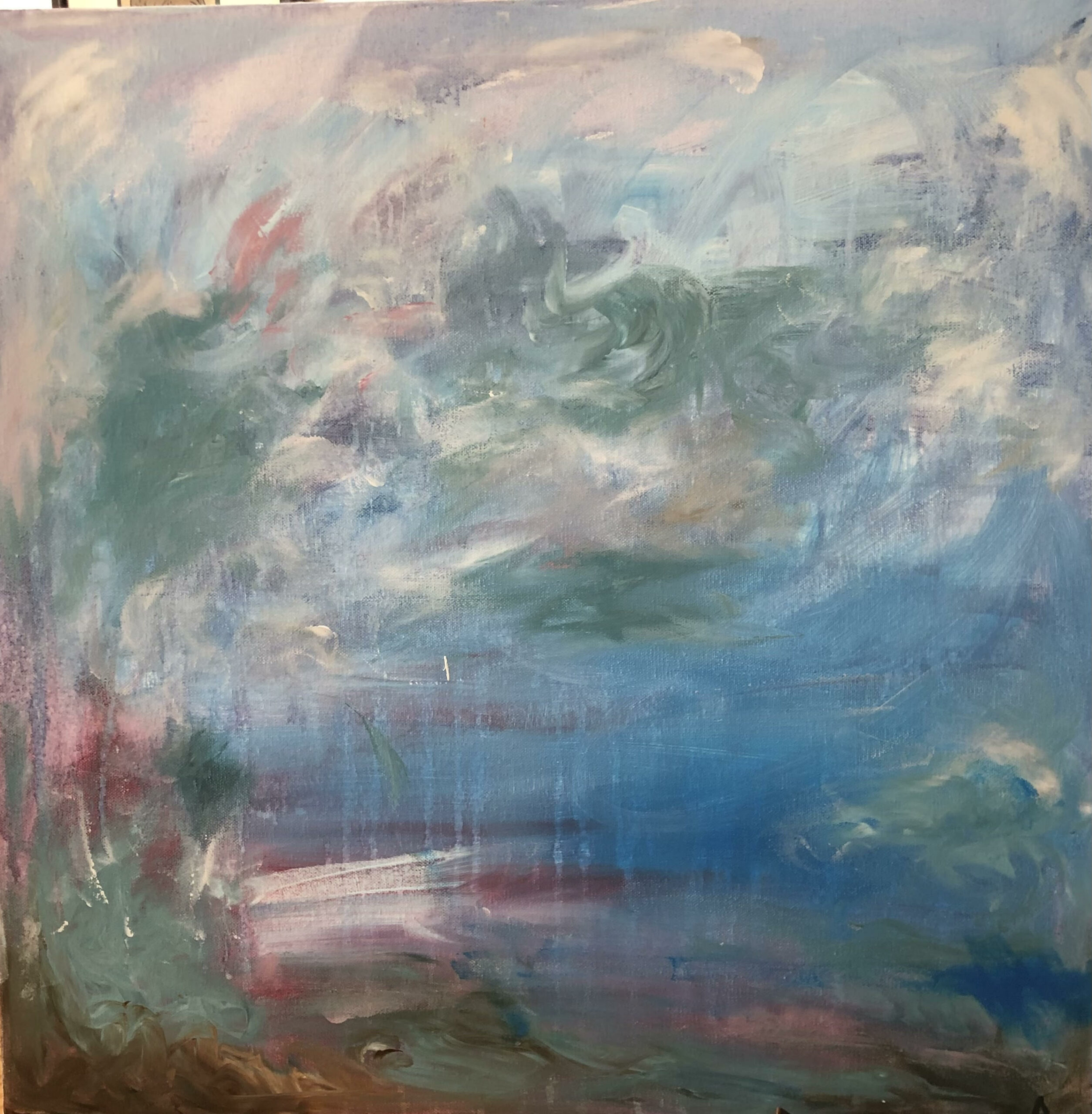 I take my inspiration from the beautiful North Devon coastline and then paint semi abstracts landscapes in my studio. I enjoyed the process of applying layers of wet paint and moving them around with brushes, hands and other materials. I love the atmosphere in the final painting.