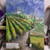 The heat of the Tuscan sun emanates from this work as it shines down on the ripening vines. The white walls of the vineyard gateway invite you up to the winery to sample the delicious produce of the region. Painted in acrylics, in a loose impressionist style, on deep edge canvas. Certification provided.