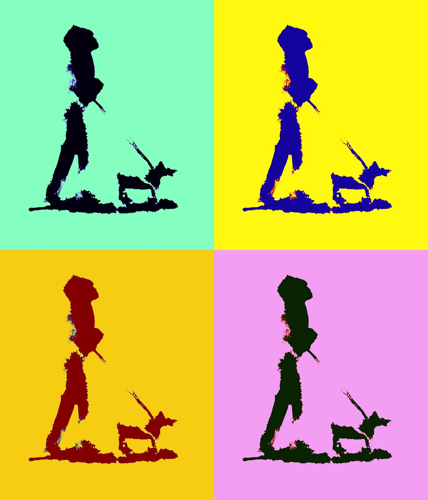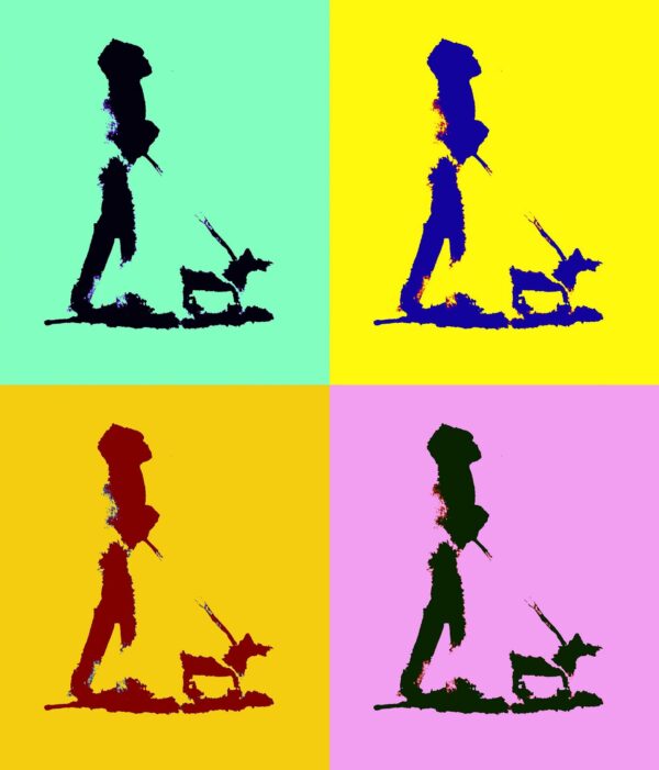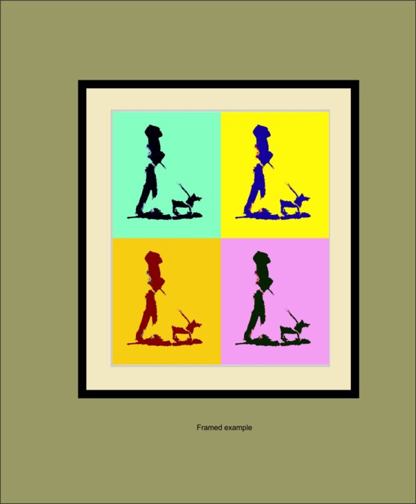 This is a colourful digitally enhanced print from an original abstract ink work of a man walking his dog. A bright cheerful addition for any wall especially for dog lovers. Limited edition of 100, printed to order, so make take a couple of days, signed and numbered on the reverse, shipped with a Certificate of Authenticity.