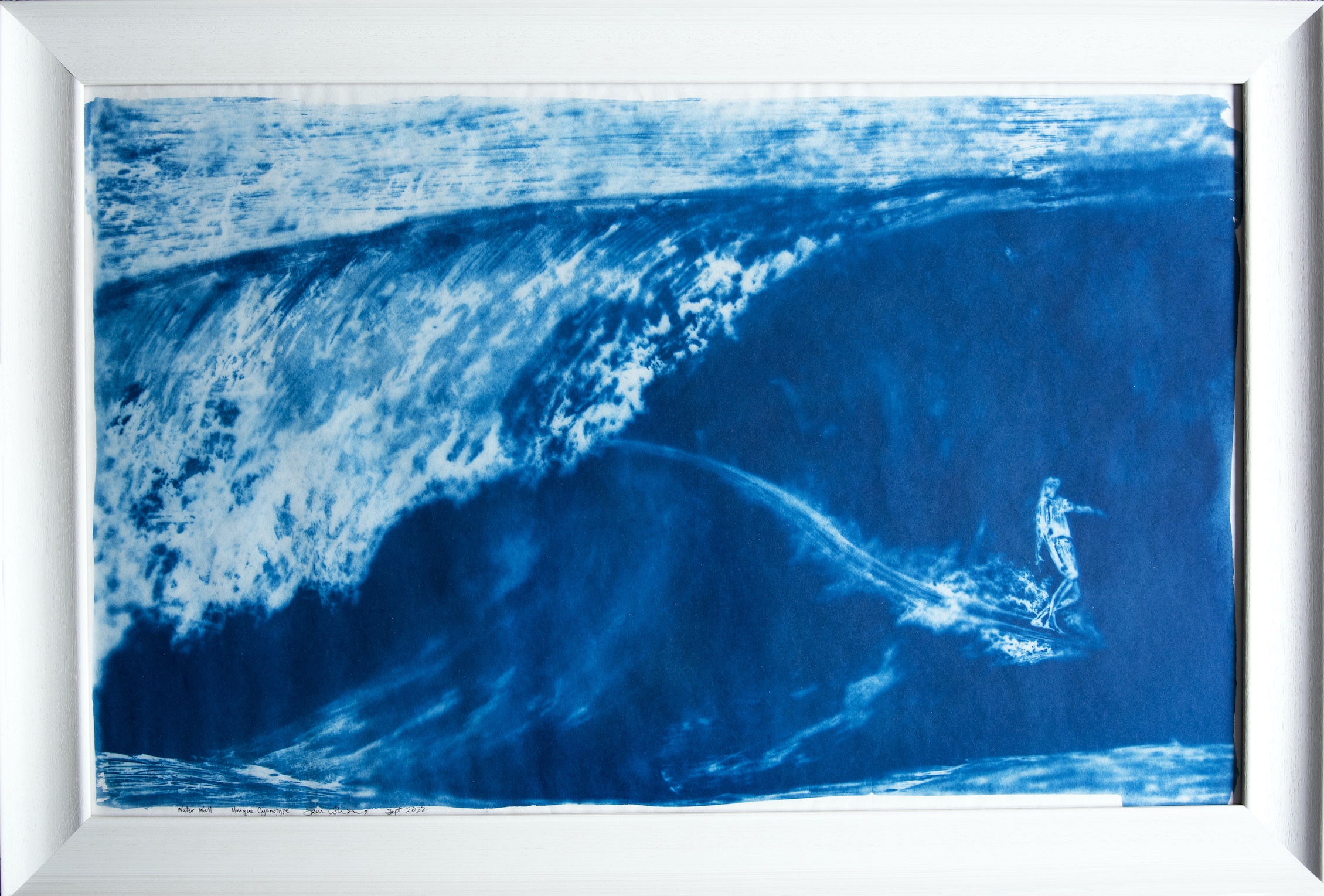 Water Wall Unique cyanotype 102 x 76 cms including frame, behind anti reflective optically clear acrylic. Sam Cousins 2022. Delivery within North Devon free, outside North Devon by courier at cost.