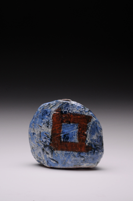 This piece is inspired by the 100-year-old industrial power looms at Coldharbour weaving Mill. It is hand-built from slabs of earthenware clay and then covered in a rich creamy slip. After a first bisque firing the piece has undergone multiple glaze firings where colours have been layered on top of each other, rubbed back and further layers added, to bring a sense of history to the surface. The surface marks are a nod towards the hours and hours of time over the years, that the looms have been in operation; marks inspired by the backwards and forwards movement of the shuttle whizzing across the loom. The orange and blue glazes reference the Devon Blue Tartan woven exclusively at Coldharbour Mill using heritage machinery and processes. Weft I belongs to my Coldharbour Collection which is a series of unique one-off limited edition ceramic sculptures inspired by my time at Coldharbour Mill, near Tiverton – one of the oldest working woollen mills in the UK – where I spent a year learning about the skilled job of weaving.